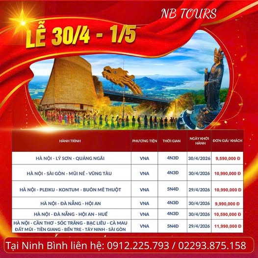 🔥 🔥 🔥 TOURS NỘI ĐỊA SIÊU CHẤT LƯỢNG LỄ 30/4/2026 🔥 🔥 🔥